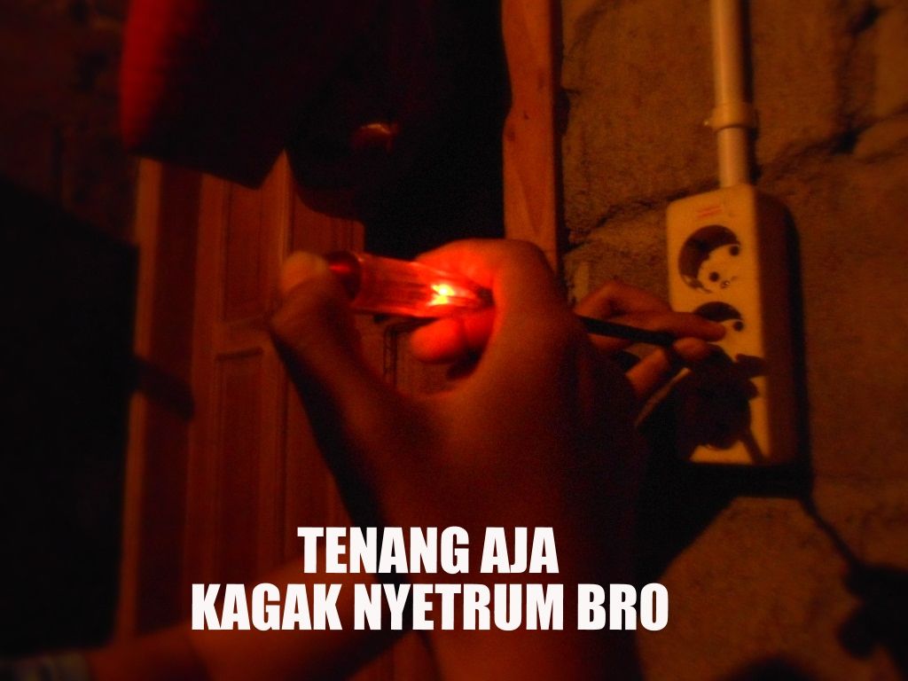 2. Siapkan stop kontak yang sudah dipastikan nyala ataupun tidak konslet. Siapin juga tespennya, kemudian tancepin dah tuh ujung pensil ke lubang stop kontak yang positip. Kalo gak tau yang mana yang positip, mana yang negatip, coba aja 2-2nya.